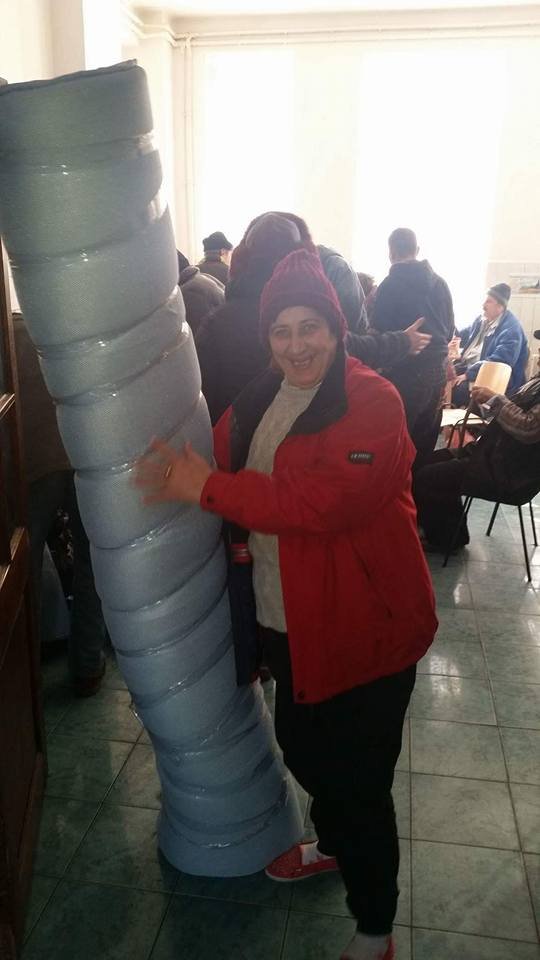 Toate obiectele donate au fost transportate de voluntarii noștri la Centrul Social de Urgență “Șansa” – str. Alexandru cel Bun, nr.27C – locul unde sunt găzduiți oamenii fără adăpost în zilele geroase. În această perioadă acolo sunt cazate mai multe persoane decât capacitatea spațiului (110 persoane/100 locuri). Așa cum se poate vedea în fotografiile de mai jos, am fost întâmpinați cu bucurie și am distribuit hainele pe loc.